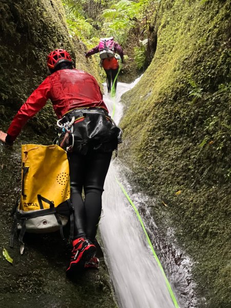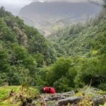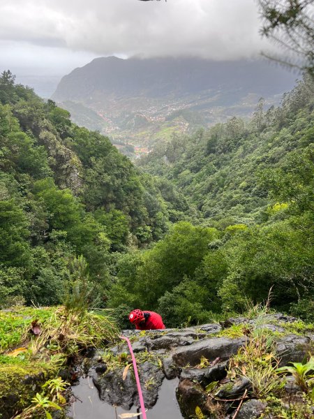 Acesso: A partir da ER228 que liga o Rosário à Encumeada, deixar um carro perto do Posto Florestal do Chão dos Louros #1 e iniciar a vereda que segue para Oeste em direção a uma segunda construção. São cerca de 20min de caminhada até encontrar uma primeira linha de água seguida de uma outra principal, por onde começa a descida do canyon.